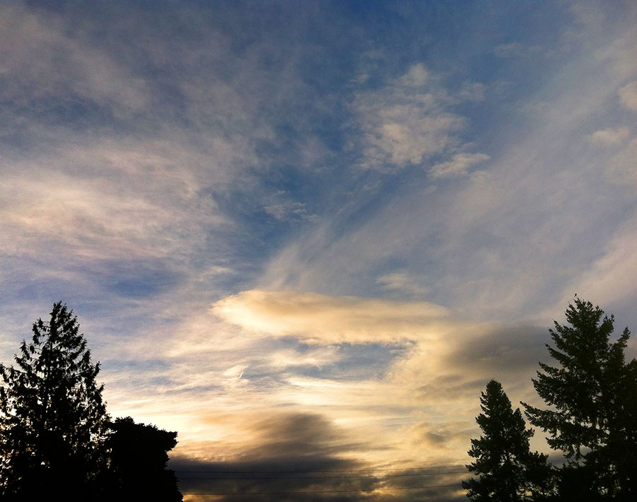 Maybe we can’t hear it, or even see it move trees here on the ground, but the wind can reveal itself by the way it sculptures the clouds high overhead. We can even see its varying effects at different altitudes by the way it shapes the clouds. This morning three different layers were moving overhead, and they combined for another meteorological masterpiece by Creation’s Master.
