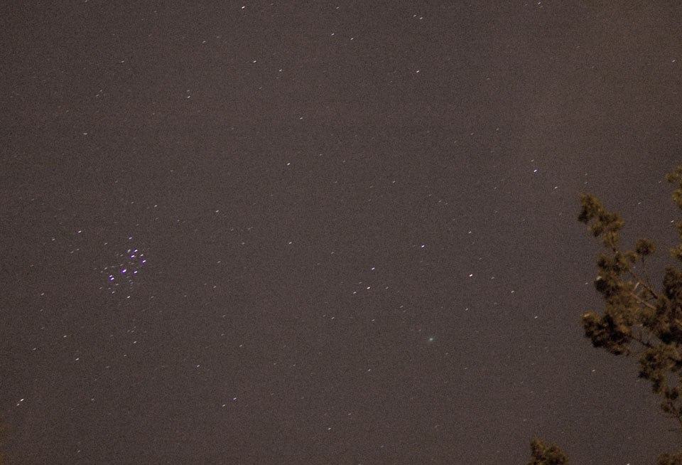 Comet Lovejoy is the fuzzy green object in the right bottom of top image; bottom is snow on Wenatchee Hills. Both taken 1/16.