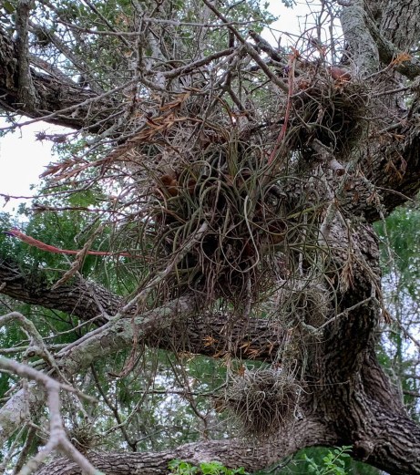 Giant ballmoss on oaks, King Ranch